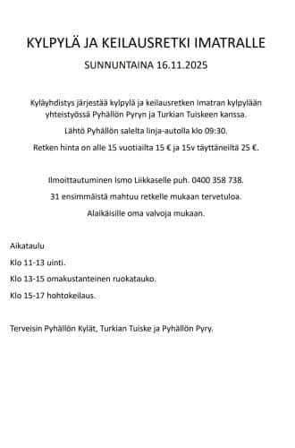 Huom! Pyhällön kylille on syksyn 2025 aikana tulossa uudet nettisivut. Näitä vanhoja sivuja ei siis päivitetä enää kovin aktiivisesti. Uusista nettisivuista tiedotetaan sitten, kunhan ne ovat valmiit!